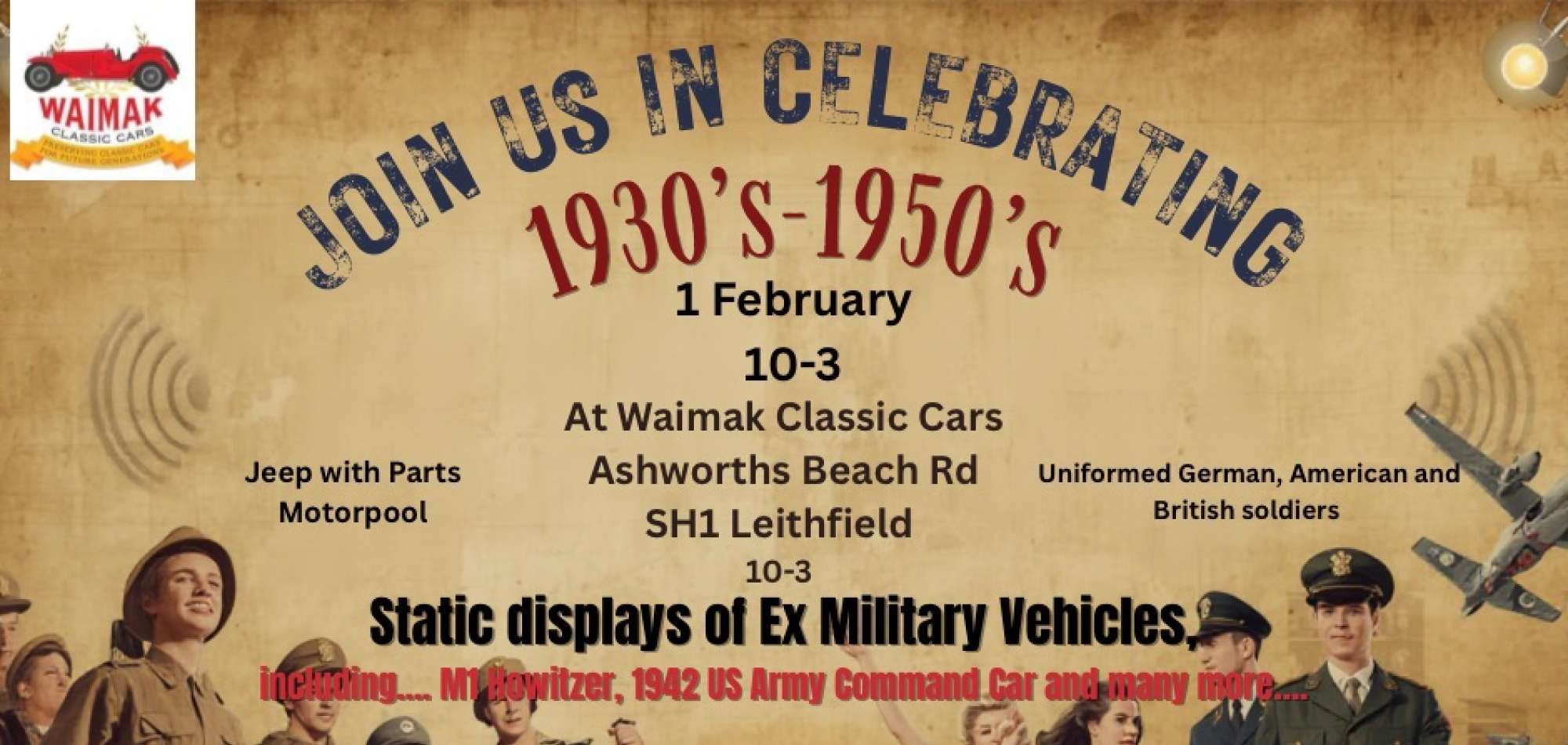 The Celebrate 1930s–1950s event is a themed community gathering taking place on Sunday, 1 February 2026 run by Waimak Classic Cars. It’s designed to honour and showcase the culture, vehicles, music, and history of the 1930's-1950's.